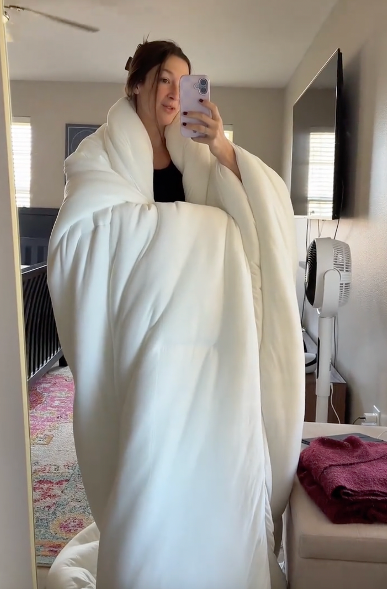I bought this thinking it’d just be another soft blanket… but wow. It’s heavy in the best way, super fluffy, and feels like you’re wrapped in a cloud. just WOW.